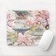 Vattenfärg i asiatiska Pagoda Amidst Cherry-Blomma Musmatta