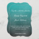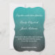 En bröllopsinbjudan med vit text är en vattenfärgsinspirerad design med teal färg med vit text.