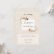 Modern bröllopsinbjudan med ett par karpfiskar. Bakgrunden är ett japanskinspirerat mönster i ljusa solnedgångsfärger.