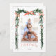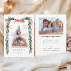 Det här fotokortet i eleganten har en vattenfärg i gräs gren ram (gräns) och är försett med rött rosett band, hullbär och botaniskt grönt, tillsammans med ytterligare ett foto och text på baksidan. Skicka julhälsning till familj och vänner.