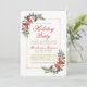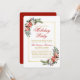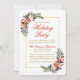Elegant Julfirande Inbjudan med Vattenfärg Poinsettia i Rött och Guld med vacker vattenfärg poinsettia, botanisk grönska, vintergrönska, julbär, vita rosor, kottar och blå bär. Guld ram.