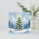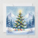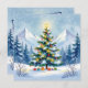 Ett söt julkort med en vattenfärgad illustration av en vinterscen i bergen med gräs träd dekorerat och festligt. På baksidan kan du lägga till ett eget anpassningsbar-meddelande.