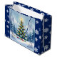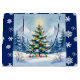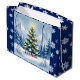 En söt julklapp med en vattenfärgad illustration av en vinterscen i bergen med gräs träd dekorerad och festlig.