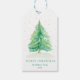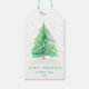 Vattenfärg Julgran med Guld Snö Presentetikett