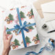 Vattenfärgen grönt gräs träd med en söt hund och julklapp på vitt. Bakgrunden till färg kan ändras.