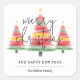 Den vackra vattenfärgen Julgranar, som är full med guld stjärna, accentuerar dessa stora fyrkantiga klistermärken med God jul, Gott nytt år och ditt namn med chic. MATCHING-objekt i vår samling.