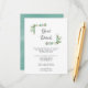 Elegant pastellfärgad vattenfärg julgrans bröllopsinbjudan med eukalyptus, mistel och tall kompletterad med en mintfärgad vattenfärg tvätt baktill.