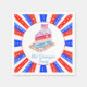 Det här är en papper napkin från party som har en vattenfärg från den fjärde juli med rött, vitt och blått rand och stjärnor.