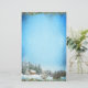 I den här jultomten med vattenfärg finns ett snöfriskt vinterlandskap med en stuga i skogen, och det snöflingstuderade himlar lämnar gott om skrivutrymme. Toppen och grund är beskurna med festlig grej.