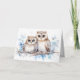 Vattenfärg ugglor på en vintergren med blå blad för jul.