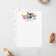 Enkel och söt, denna personliga brevpapper har ditt namn eller monogram i rosa med en rad av flerfärgade kaktusar i målad vattenfärg konst. Baksidan har ett festligt rosa prickmönster. Perfekt för barns brevpapper, könsbestämmande baby shower, eller som tack-kort, För att se fler kaktusdesigner som denna besök www.zazzle.com/vginvites