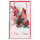 Söt julklapp i rött och vitt, med vackra teckningar av en röd kardinal och blommor. Anpassa texten med din egen Julhälsningar.