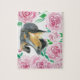 Vattenfärg Kärlek i en Dachshund med Rosa ros Pussel