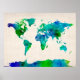 Vattenfärg Karta i världskartan Poster