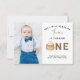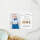 Födelsedagsinbjudan med vattenfärg illustration av söt kinesisk dumpling på träplatta. Texten säger "VÅR LILLA DUMPLING".