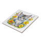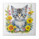 Vattenfärg Kitten i Gult och Rosa Flowers Kakelplatta