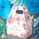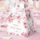 Denna anpassade bröllopsdusch-favoritbox har vackra vattenfärgade körsbärsblommor på en vit bakgrund och ett elegant handskrivet typsnitt. Anpassa den med namnet på den blivande bruden och datumet.