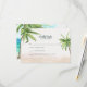 Detta vattenfärgade svarskort för strandbröllop har palmer och mjuka havsinspirerade nyanser för en avspänd känsla av destinationbröllop.