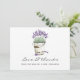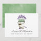 Trendiga lantliga chic lavendelbröllop tack-kort med salvia grön vattenfärg tvätt bakgrund.