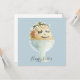 Whimsisk vattenfärg leende ägg med blomkrona i vit äggkopp på pastell blå bakgrund. Anpassningsbar Glad påsk text i modernt script teckensnitt