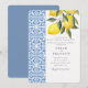Vattenfärg Lemon Blue tile Mediterranean Bröllop Inbjudningar