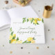 Fira huvudpersonen/personerna på en citron-tematisk bröllopsfest eller annan särskild händelse. En massa hela och skurna citroner arrangerade längs toppen och botten av denna färgglada gästbok. Perfekt för citrus- eller trädgårdstematisk bröllop eller annan händelse. Kan också anpassas för en förlovningsfest, årsdagsfirande eller födelsedagsfest. Tillgänglig med matchande produkter.