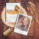 I den här samlingen av stationära bröllop används fredliga landskapsbilder av rullande backe och majestätiskt träd för att ange en varm och intim ton för bröllop. Ett handskrivet, namnteckning teckensnitt i kombination med ett modernt sans-serif-tecken ger en elegant tryckning. Med Spara datumkortet som visas här får du en egen bild och en delikat hjärtaccent på framsidan med ett vattenfärgslandskap i skuggor från guldfärgad gult till rostigt rött på baksidan. Sök i ID786 om du vill se andra delara och färg-alternativ för den här uppsättningen.