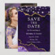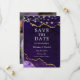 Moderna Eleganta Vattenfärg Lila och Guld Marmor Agat Geod Spara Datum Kort med Strängljus - Foto Bakgrund