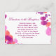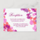 Vattenfärg lila rosa bröllagsmottagningskort med vackra abstrakta färgglada vattenfärgssprutdesigner i olika nyanser av lila, rosa och korall. Ena sidan har mottagningsinformation och den andra sidan har vägbeskrivningar. Du kan också använda detta för andra bifogade kort som inrymme.