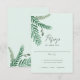 Det här charmiga svars kortet har en vattenfärg illustration av palmlöv, perfekt för en destination bröllop.