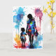 Snygg illustration av ett mamma och ett dotters färgstarka vattenfärgat stänk i Lycklig Mors dag-kort med ett personlig på insidan.