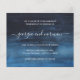 Modern budget bröllopsinbjudan med en enkel design med era namn i ett handskrivet typsnitt med svängar tillsammans med era evenemangsuppgifter i vitt, över en mörk marinblå vattenfärgstvätt. Den mörka marinblå färgen gör denna inbjudan perfekt för ett dystert höst- eller vinterbröllop. Dessa billiga bröllopsinbjudningar är tryckta på pappersark för ett budgetvänligt alternativ.