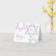 En modern, mjuk Bat Mitzvah tack-kortdesign av Stacey Meacham med ombre vattenfärg stjärnor och ett tre initial monogram.