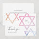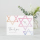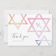 En modern, mjuk Bat Mitzvah tack-kortdesign av Stacey Meacham med ombre vattenfärgsstjärnor och ett tresiffrigt monogram.