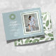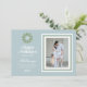 Fira julen med dessa eleganta, blå och vattenfärggröna accenter. Denna design har ett anpassat monogram i en grön, vattenfärgslövkrans med möjlighet att lägga till ett personligt meddelande och foto.