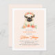 Bjud in gästerna till din fest med denna anpassningsbara inbjudan till baby shower. Den har vattenfärg illustrationer av en söt mops och apelsinblommor. Anpassa genom att lägga till dina detaljer. Denna söta mops inbjudan är perfekt för födelsedagar, baby shower och andra evenemang.