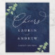 Vattenfärg Mörkblå Grönska Bröllop Vinflaska Etikett