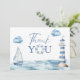 Detta nautiska tackkort för baby shower kan personifieras med ditt speciella meddelande på baksidan. Designad av Thisisnotme©