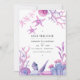 Whimsical rosa och blå havstematisk strand bröllopsanmälan med havsormbunkar, alger, koraller, sniglar och sjöstjärnor designad för att snabbt och enkelt anpassas till ditt evenemang.