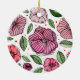 Vattenfärg och bläck-blommor - rosa och grönt julgransprydnad keramik