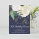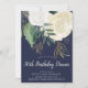 En sofistikerad 50-dagars middagsinbjudan i marin, grönt, vit och faux guld glitter, med vattenfärgen ro och löv och handskrivet stil-teckensnitt.