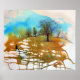 Vattenfärgslandskapsteckningar med Inked Träd som visas på poster. Den här designen kommer från en av mina ursprungliga tryckta bakgrunder som jag sedan ritade träd ovanpå. Rubriken "Sista Vinden av höst II". Finns på olika produkter. Design av JennsEmporium.