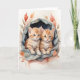 Vattenfärg Orange Tabby Bästa Vänner Blommor Blank Kort