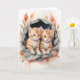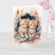 Bedårande orange tabby kattungar som kramar varandra omgivna av vackra blommor. Tomt gratulationskort för födelsedag, årsdag, ny baby, tack, kondoleans, etc.