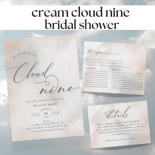 Den här eleganten och den visuella inbjudan är perfekt för det nya temat "på moln 9". Den har en bakgrund i ett vattenfärgsmoln och skript snabbt text.