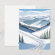Vattenfärg på skidbacke julkort