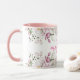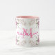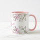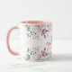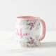 En vacker rosa handmålad vattenfärg blommig arrangemang illustration på en mugg med din egen personliga monogram och namn. Stor romantisk personlig gåva för flickor som älskar rosa vår och sommar blommor, rosor, paeonier.