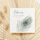 Våra snygga cocktailservetter är en vacker personlig touch för den bröllopsdusch du planerar! Designen har en enda påfågelsfjäder i mjuka vattenfärger, flankerad av dina evenemangsuppgifter -- hedersgästens namn, evenemangstyp och datum -- i koordinerande mörkblå och medelblå bokstäver.