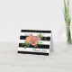 Elegant bröllop tack-kort gjort i ett djärvt svart och vitt randigt mönster, med en vacker och färgrik päonibukett och svart text som läser Tack. Anpassa texten på insidan efter dina behov. Matchande bröllopsprodukter finns tillgängliga.