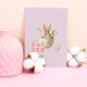 Vattenfärg Påskharen Rosa Julkort